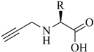 The majority of applications discussed in this review employ propargyl glycine (Table 1, entry 1) as an alkyne prochelator. This is likely due to its commercial availability and demonstrated equivalency of the resulting tridentate triazolyl ligand system to Nτ-functionalized His. However, other alkyne derivatives (e.g., readily accessible Nα-propargylated amino acid derivatives; Table 1, entry 2) also hold great promise for future applications, especially in terms of the development of multifunctional radioconjugates.