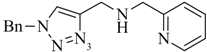 As discussed in the introduction, the preparation of tridentate chelating systems (and BFCAs thereof) for the complexation of [M(CO)3]+ generally requires multi-step synthesis and their incorporation into (bio)molecules often lacks efficiency and selectivity due to cross-reactivity with other functional groups present. The chemical orthogonality of the CuAAC together with the ease of the introduction of alkyne and azide moieties into molecules by synthetic or biochemical methods [23,24,25,26,27] provides a solution to these shortcomings. Thus, the reaction of azide-functionalized compounds with alkyne prochelators provides 1,4-disubstituted 1,2,3-triazole-containing tridentate ligand systems (termed “regular click ligands”; Scheme 2A) [21]. Similarly, cycloaddition of alkyne derivatives with azide prochelators yields isomeric triazolyl products (referred to as “inverse click ligands”; Scheme 2B), which are set up to coordinate to [M(CO)3]+ via the nitrogen in position 2 of the triazole heterocycle, rather than the nitrogen in position 3 of “regular click ligands” (see below). Noteworthy, all ligand systems can be prepared without the use of protective groups in a single step, high yields, and under mild reaction conditions suitable for the functionalization of delicate biomolecules. Reaction of the tridentate chelators with [M(CO)3]+ gives structurally diverse organometallic complexes that differ in size, lipophilicity, and overall charge (Table 1). All these characteristics are important for fine tuning the physicochemical properties of a radiotracer for its application in vivo.