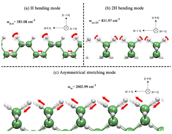 GeNWs vibration modes of (a) single hydride bending mode (ωB-H), (b) dihydride scissor-bending mode (ωsci-2H) and (c) dihydride asymmetrical stretching mode (ωas).
