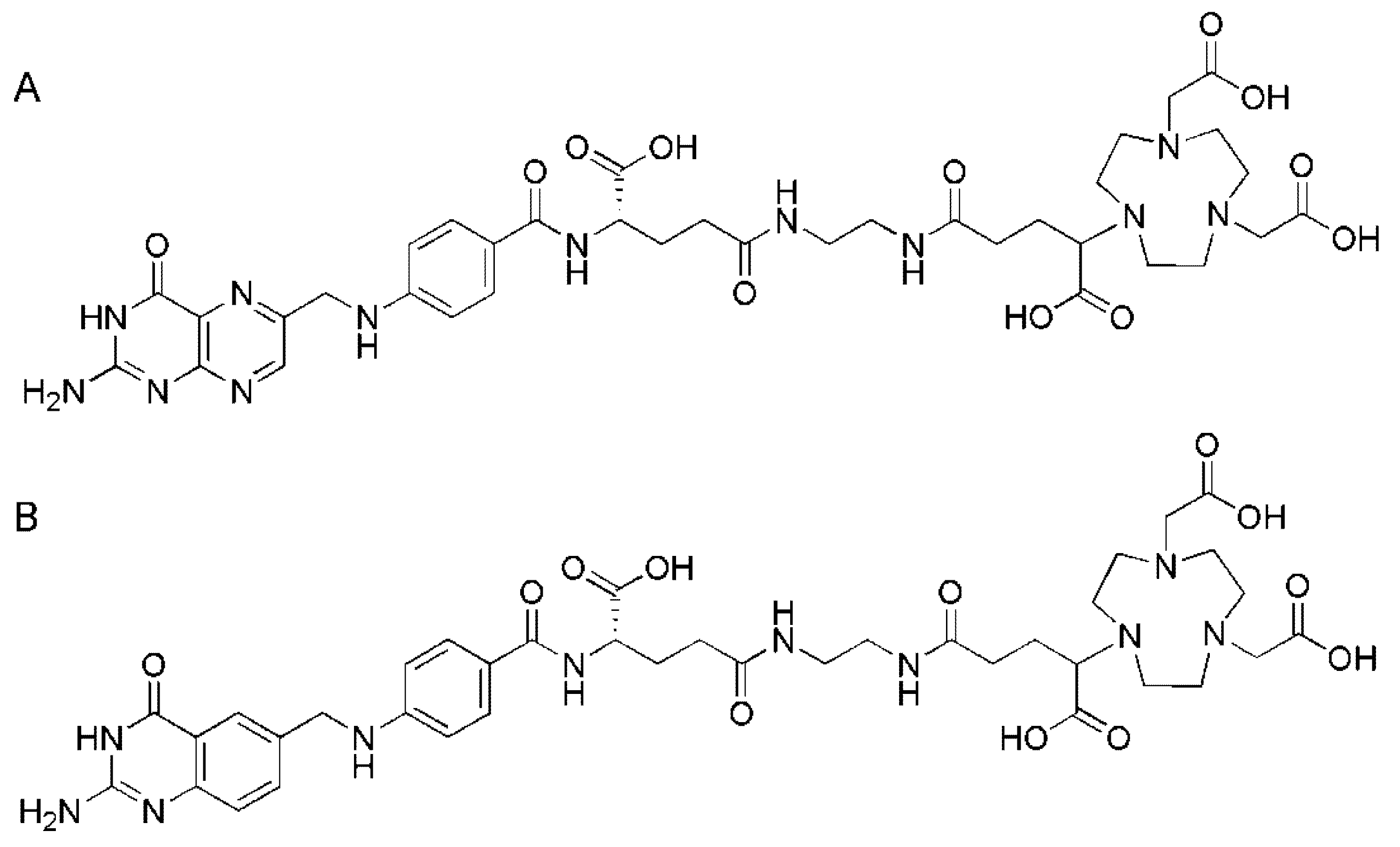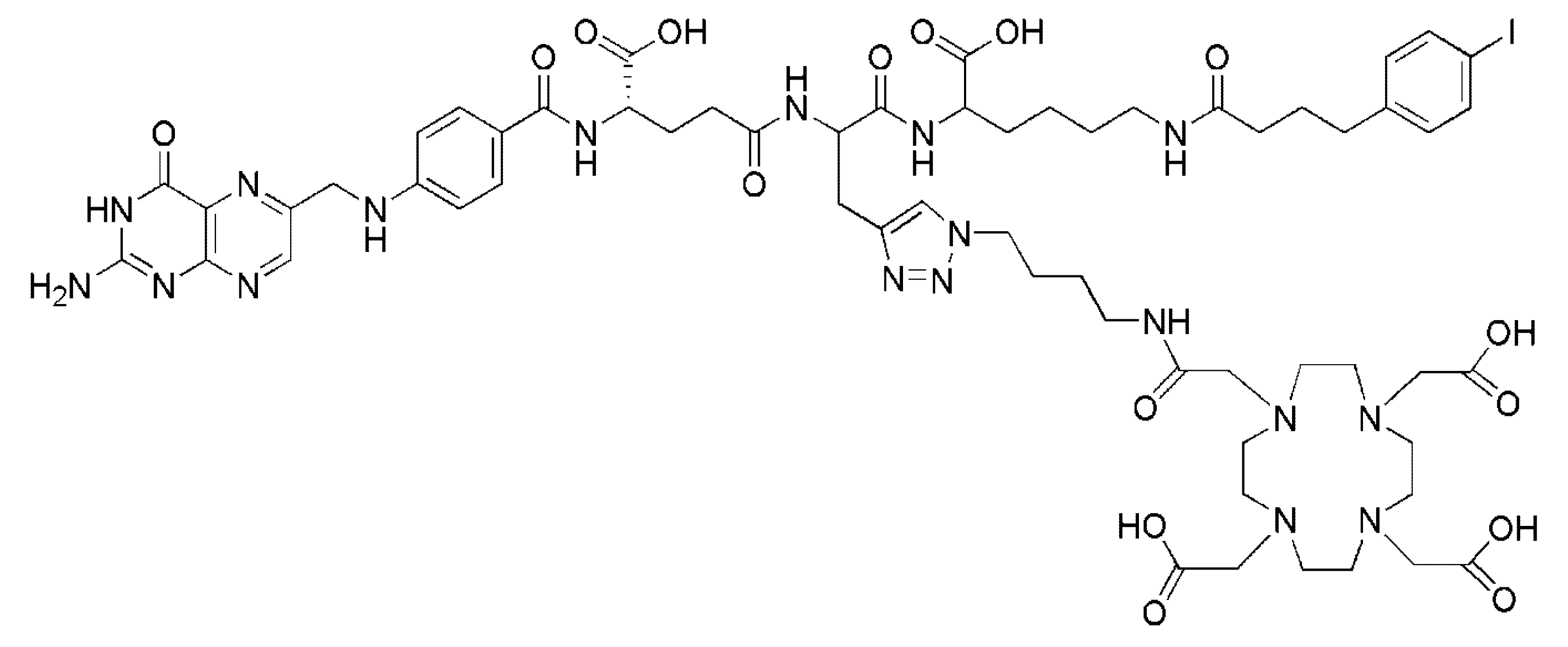 - Ross, T.L.; Honer, M.; Müller, C.; Groehn, V.; Schibli, R.; Ametamey, S.M. A new 18F-labeled folic acid derivative with improved properties for the PET imaging of folate receptor-positive tumors. J. Nucl. Med. 2010, 51, 1756–1762. [Google Scholar] [CrossRef]