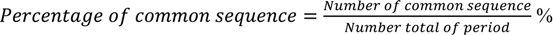 Panel performances were monitored by evaluating the repeatability, discrimination power and homogeneity of panelists and of the panel. For TDS data, the repeatability index represents panelist consistency in their evaluation of a product. It corresponds to the percentage of common sensation sequences measured between the three replicates of each product (R1, R2 and R3) for each subject. First, for each subject and for each yogurt, the percentage of common sequences between each combination was calculated (R1/R2, R1/R3 and R2/R3) according to the formula below. The sequences were constructed by 250 ms-time periods. To calculate the percentage of common sequence between two sequences, they were compared chronologically by 250 ms-time period. Three percentages were obtained by combination Yogurt × Subject: