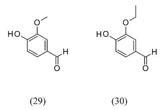 | n/a | flavored sugars | vanillin (29) and ethyl vanillin (30) extraction | None | [57] |