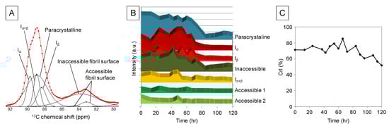 - Okushita, K.; Komatsu, T.; Chikayama, E.; Kikuchi, J. Statistical approach for solid-state NMR spectra of cellulose derived from a series of variable parameters. Polym. J. 2012, 44, 895–900. [Google Scholar] [CrossRef]