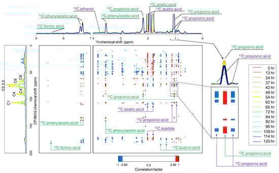 - Nakanishi, Y.; Fukuda, S.; Chikayama, E.; Kimura, Y.; Ohno, H.; Kikuchi, J. Dynamic omics approach identifies nutrition-mediated microbial interactions. J. Proteome Res. 2010, 10, 824–836. [Google Scholar]