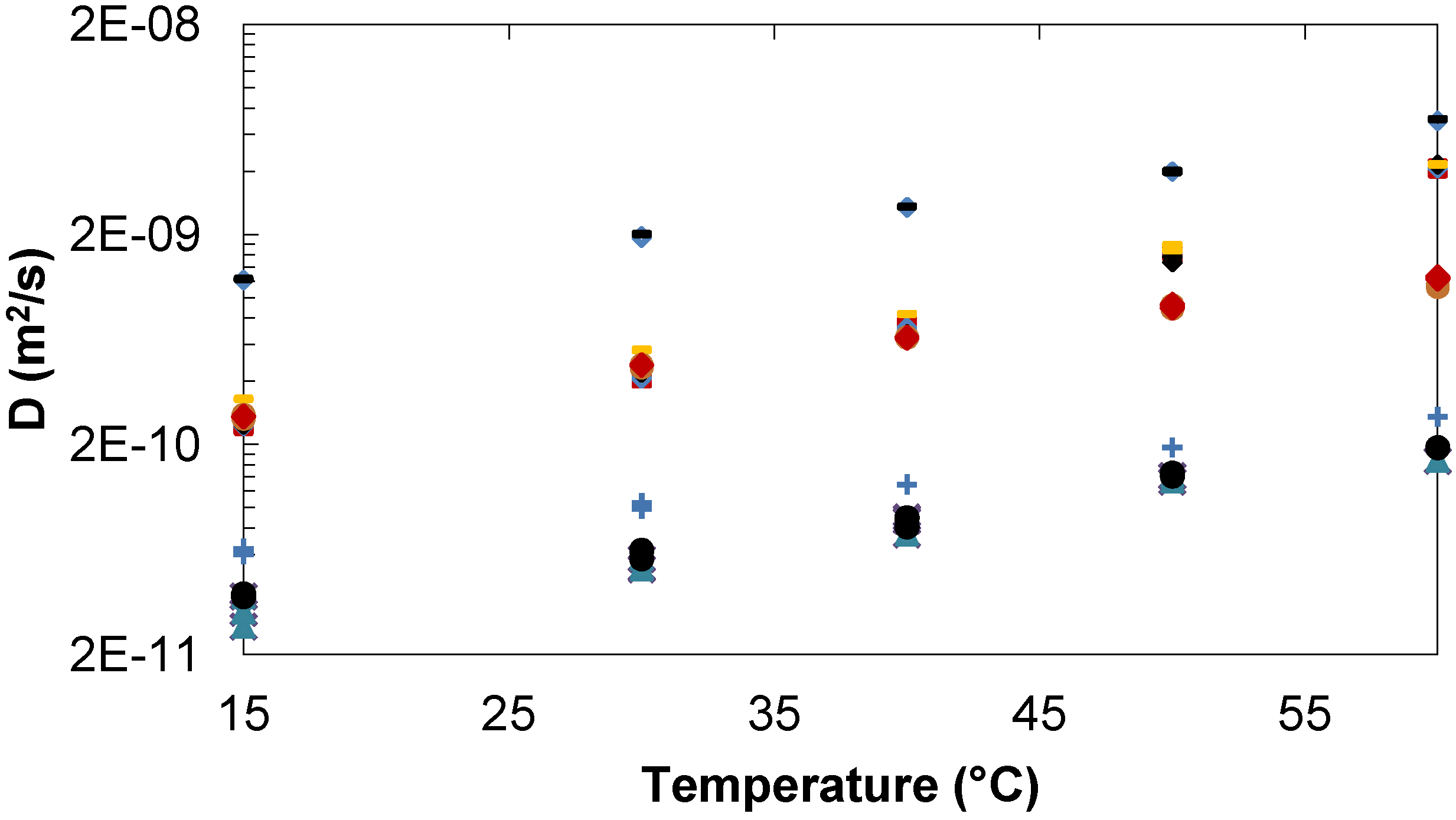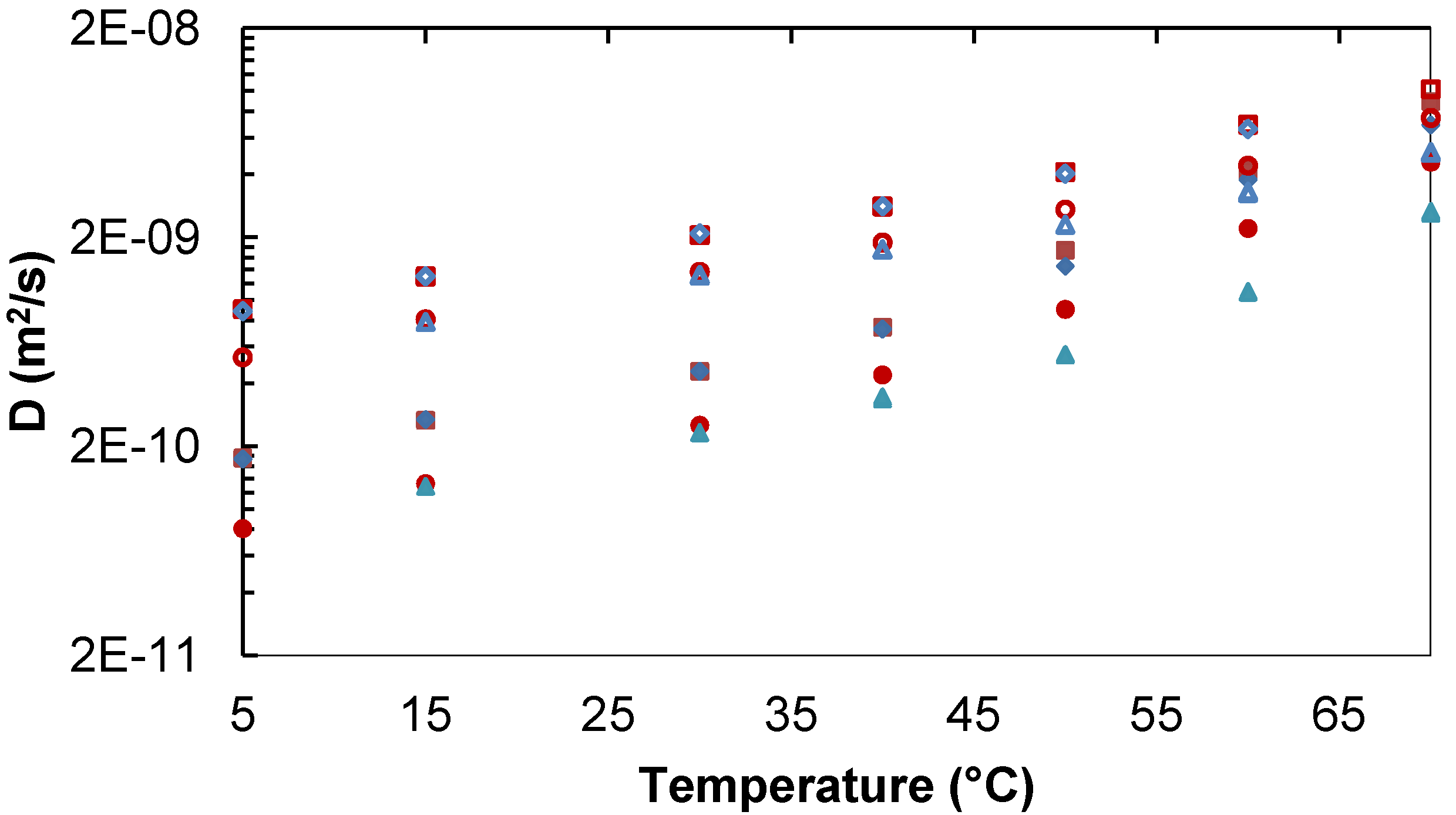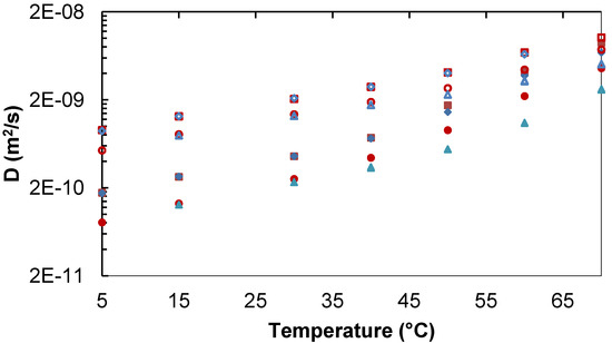 - Ribeiro, A.C.F.; Ortona, O.; Simoes, S.M.N.; Santos, C.I.A.V.; Prazeres, P.M.R.A.; Valente, A.J.M.; Lobo, V.M.M.; Burrows, H.D. Binary mutual diffusion coefficients of aqueous solutions of sucrose, lactose, glucose, and fructose in the temperature range from (298.15 to 328.15) K. J. Chem. Eng. Data 2006, 51, 1836–1840. [Google Scholar] [CrossRef]
