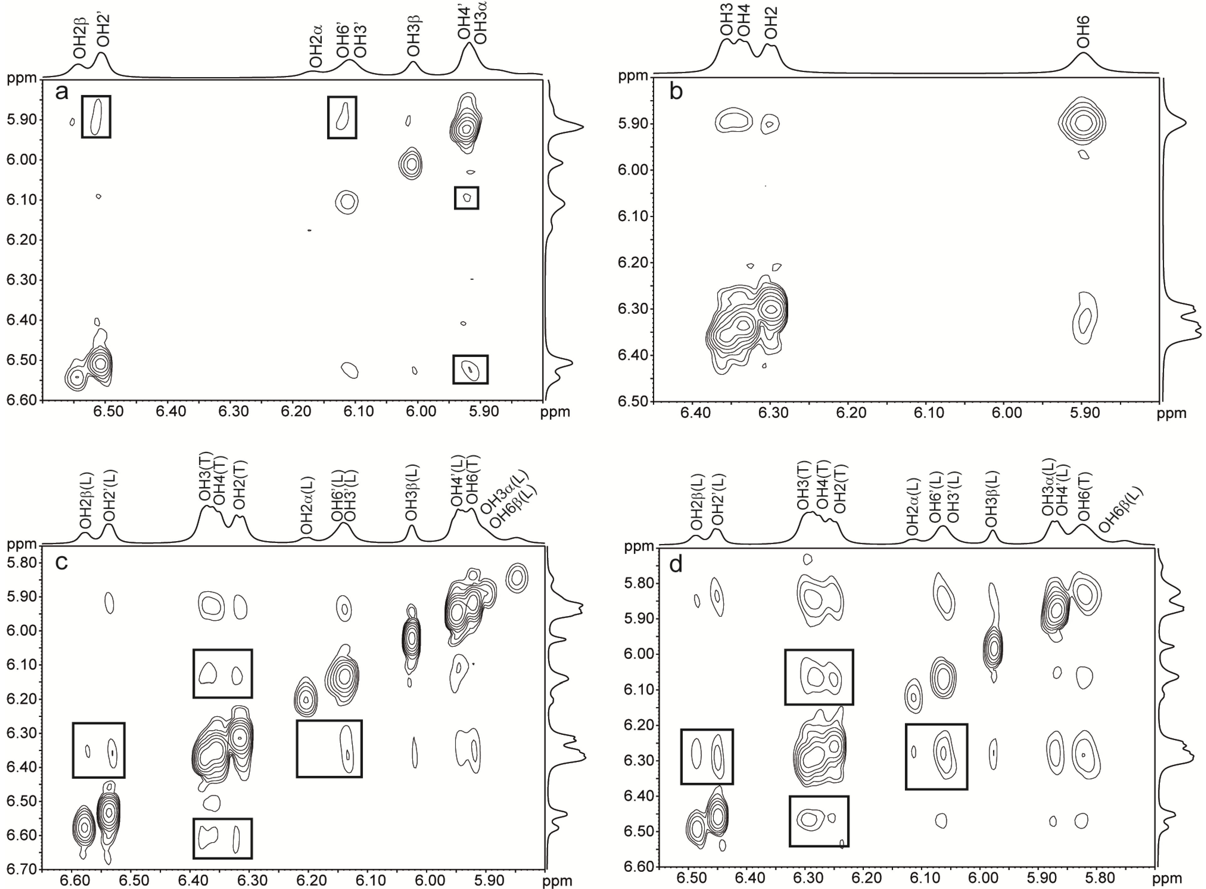 | Trehalose | 3JCH, OH/Δδmix/dδ/dT | 3JCH, OH/Δδmix/dδ/dT | 3JCH, OH/Δδmix/dδ/dT | 3JCH, OH/Δδmix/dδ/dT |