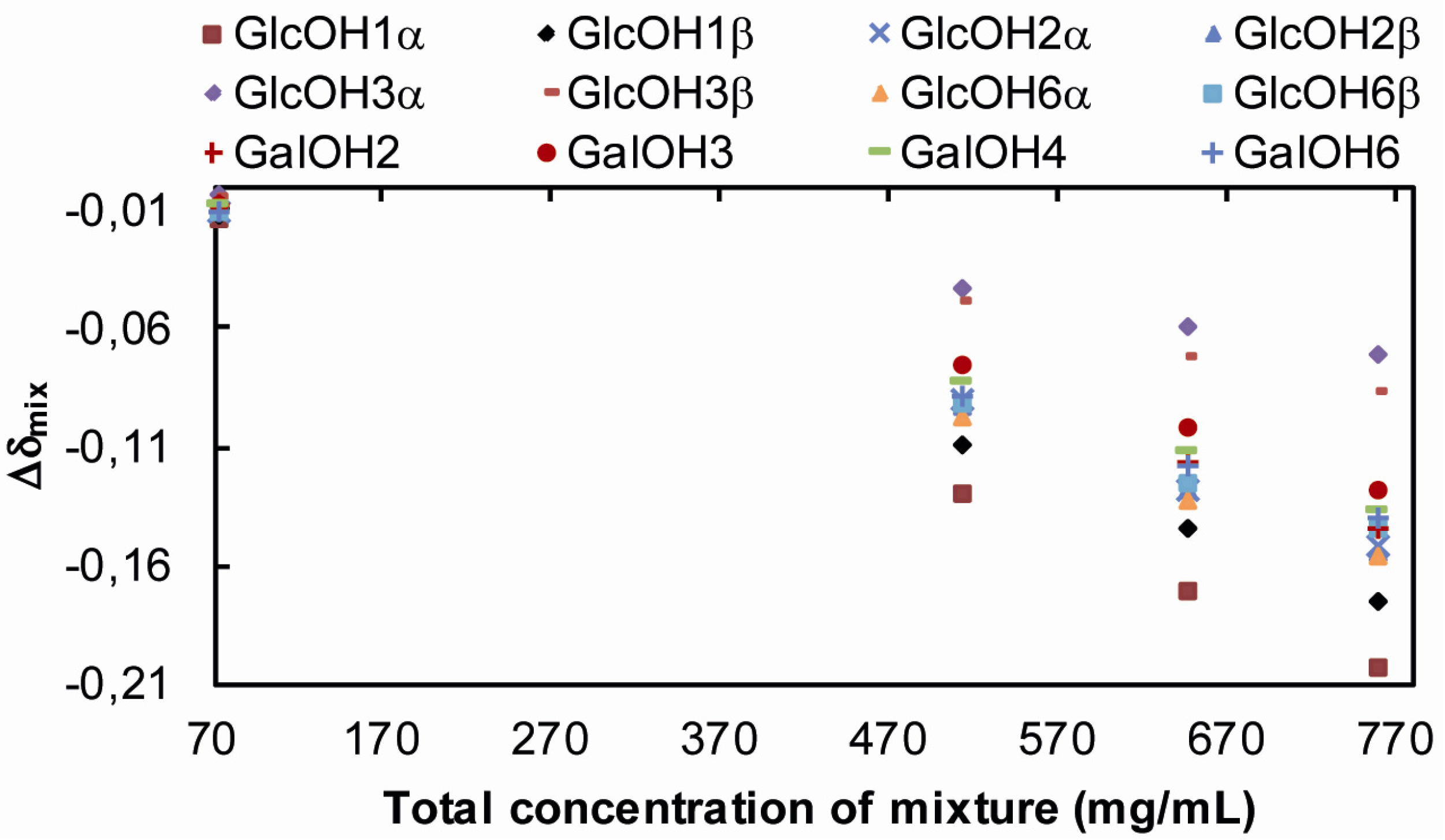 | GlcOH2α | ----/−0.090/−11.5 | ----/−0.091/−10.8 |