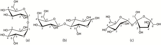 - Brown, G.M.; Rohrer, D.C.; Berking, B.; Beevers, C.A.; Gould, R.O.; Simpson, R. The crystal structure of α,α-trehalose dihydrate from three independent X-ray determinations. Acta Crystallogr. B 1972, 28, 3145–3158. [Google Scholar] [CrossRef]