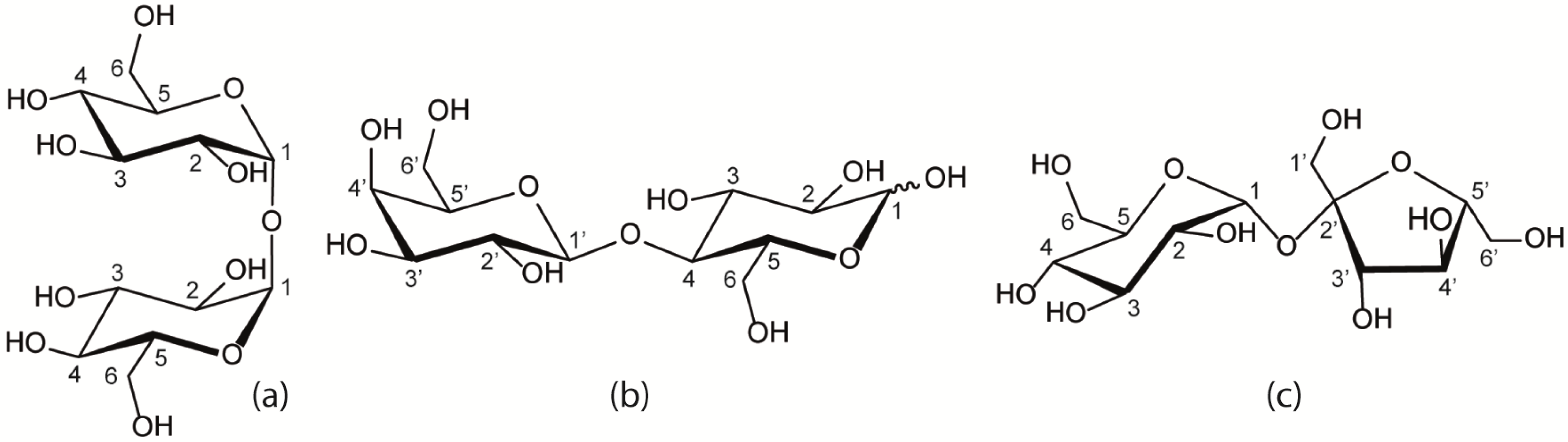 - Davies, D.B.; Christofides, J.C. Comparison of intramolecular hydrogen-bonding conformations of sucrose-containing oligosaccharides in solution and the solid state. Carbohyd. Res. 1987, 163, 269–274. [Google Scholar] [CrossRef]