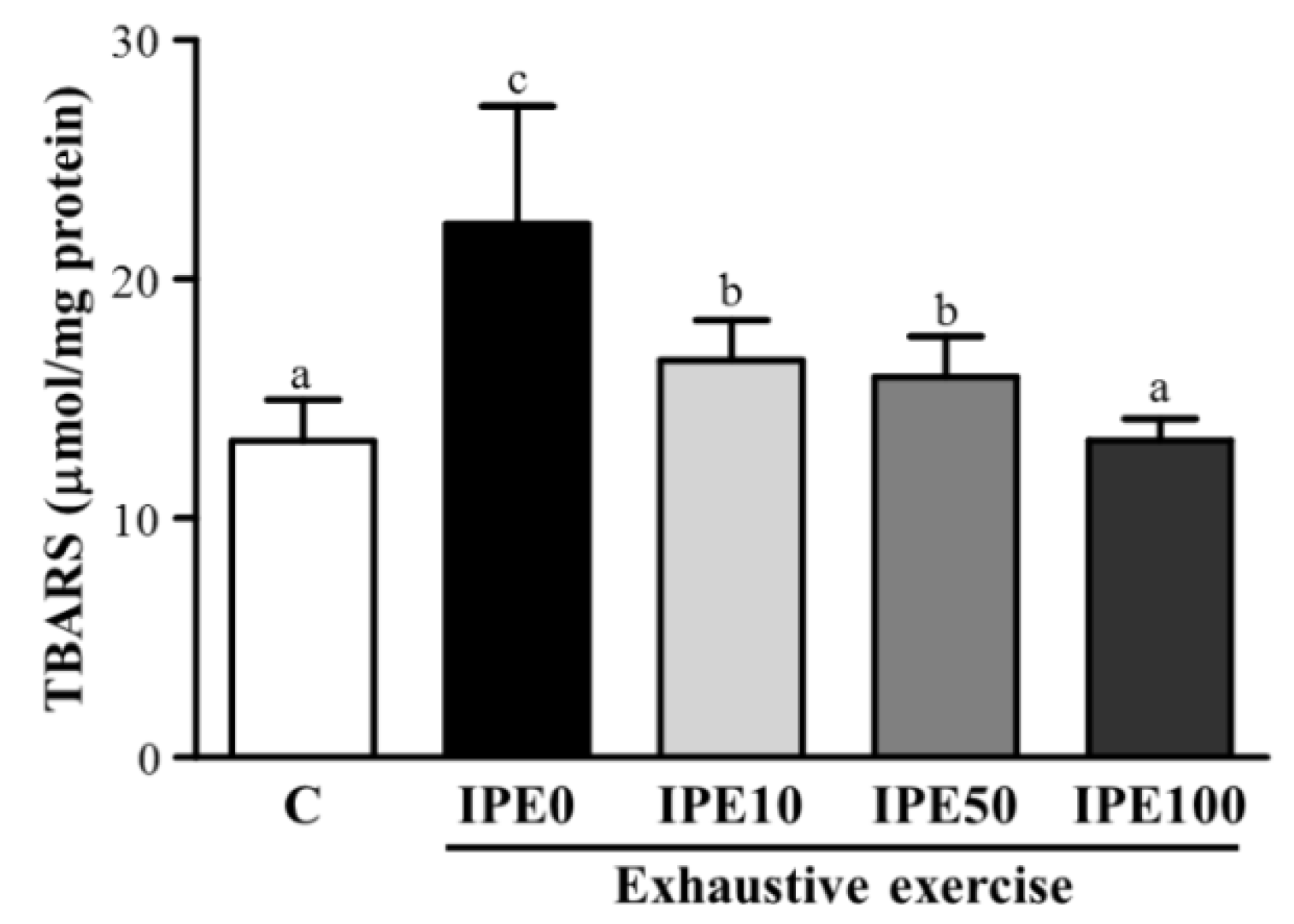 2.2. Effects of IPE Supplementation on Oxidative Stress after an Exhaustive Swimming Exercise Challenge