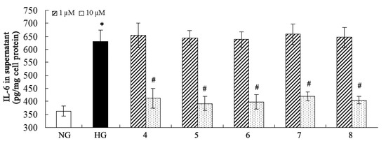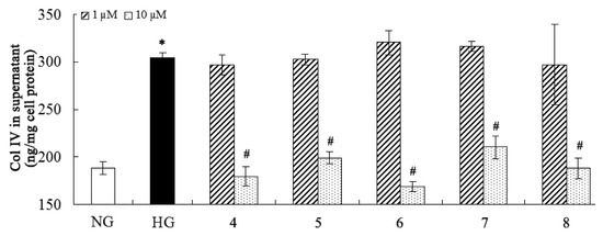 +5(c 0.05, H2O)].3.5. Inhibition of Fibronectin, Collagen IV, and IL-6 Secretion
