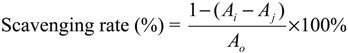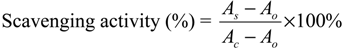 where As is the absorbance of the sample; A0 is the absorbance of the blank solution using distilled water; and Ac is the absorbance of a control solution in the absence of H2O2.