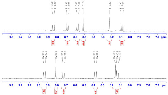 The 1H-NMR (400 MHz, CDCl3) spectra of 1,6-C (top) and 1,7-C (bottom).