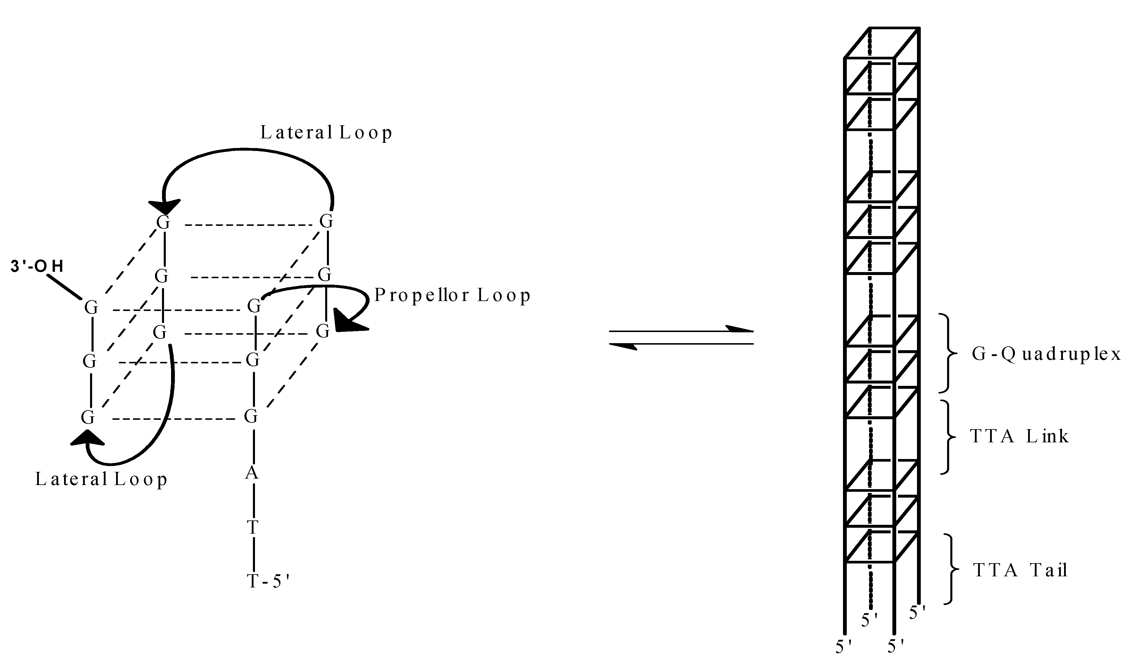 - Williamson, J.R. G-Tetrad structures in telomeric DNA. Ann. Rev. Biophys. Biomol. Struct. 1994, 23, 703–730. [Google Scholar] [CrossRef]