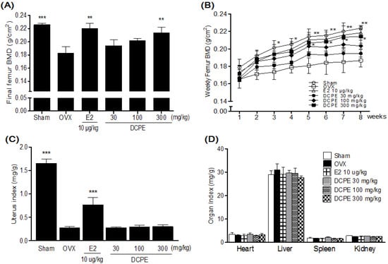 2.4. Effect of DCPE on BMD and Organ Weights in OVX Rats