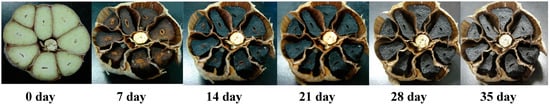 Changes in the color of black garlic during the aging period.