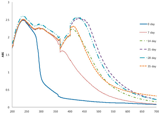 Visible spectra of black garlic during the aging period.