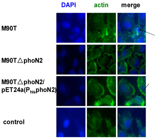 2.3. The Function of VirG (IcsA) Was Influenced in ΔphoN2