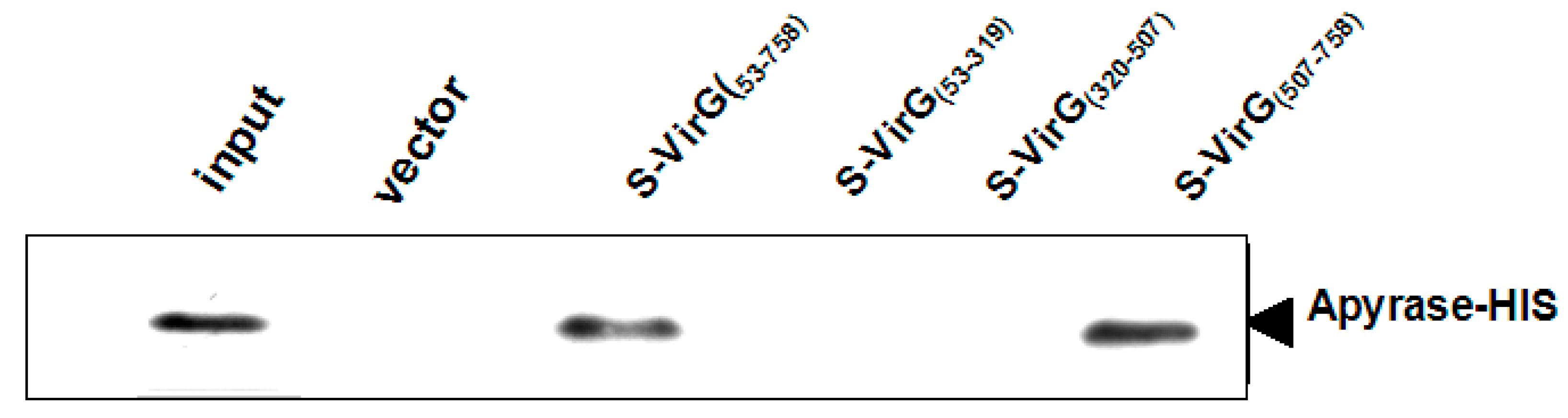 Analysis on the Interaction Domain of VirG and Apyrase by Pull-Down Assay