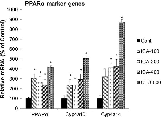 2.1. Effect of Icariin on the mRNA of PPARα and Marker Enzymes