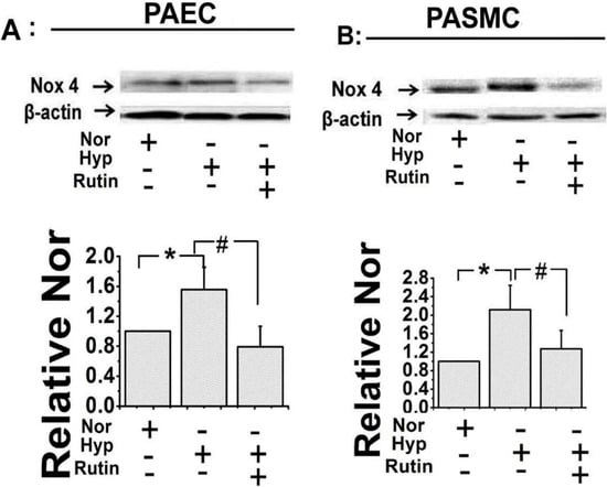2.2. Rutin Influenced the Expression of Nox4 under Hypoxia