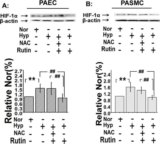 2.5. The Upregulated Expression of HIF-1α Induced by Hypoxia Was Depressed by Rutin