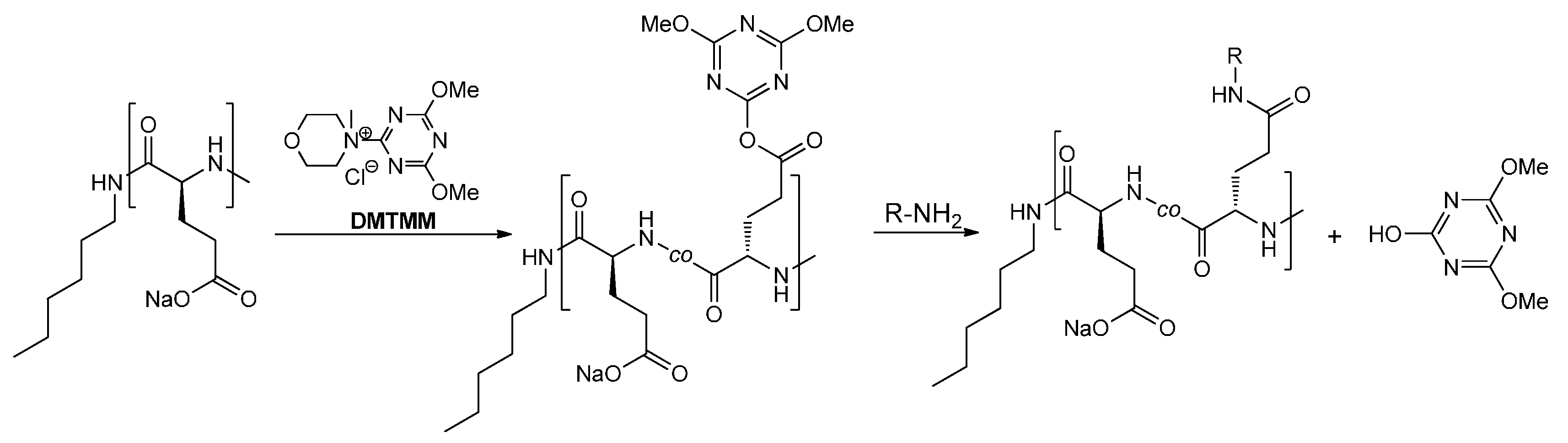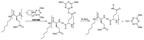 - Pelet, J.M.; Putnam, D. An In-Depth Analysis of Polymer-Analogous Conjugation Using DMTMM. Bioconjug. Chem. 2011, 22, 329–337. [Google Scholar] [CrossRef] [PubMed]