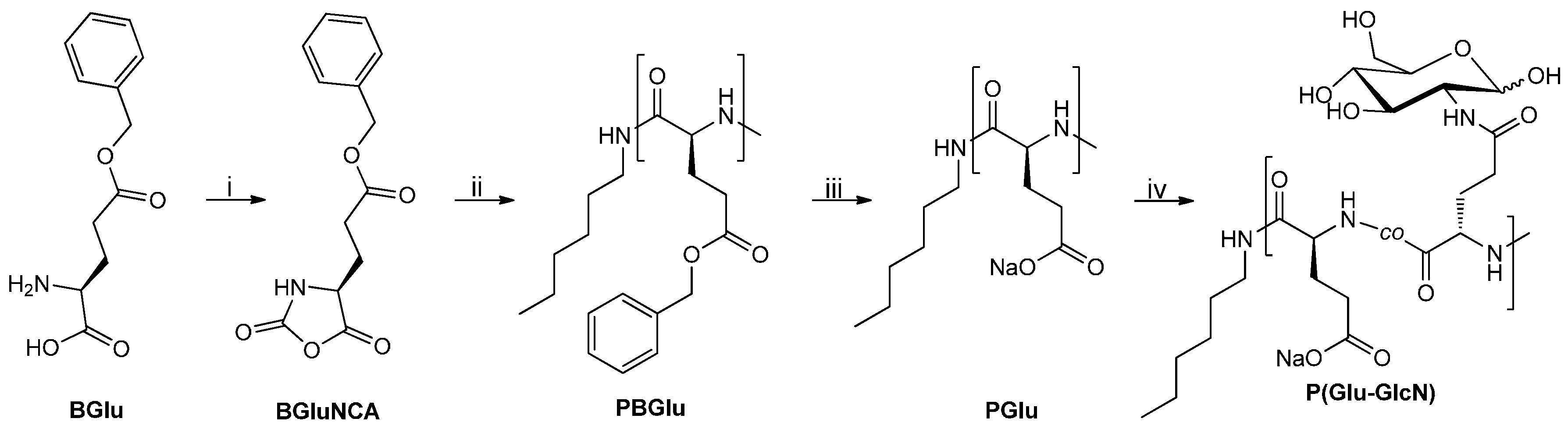 - Sample Availability: Samples of the compounds PBGlu, PGlu and P(Glu-GlcN) are available from the authors.