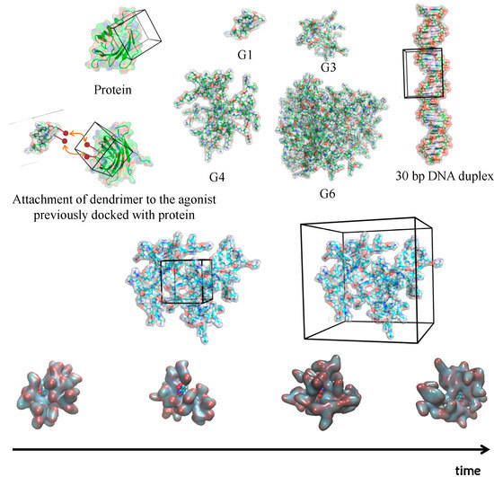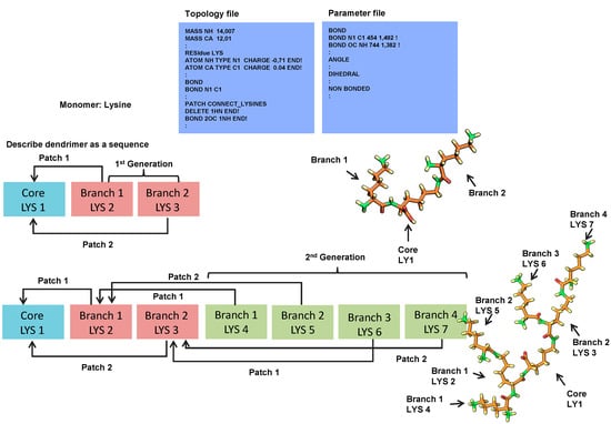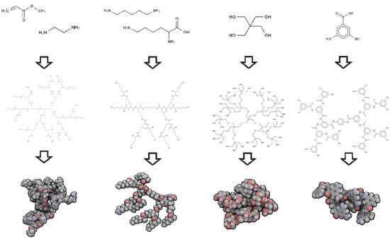 - Maingi, V.; Jain, V.; Bharatam, P.V.; Maiti, P.K. Dendrimer building toolkit: Model building and characterization of various dendrimer architectures. J. Comput. Chem. 2012, 33, 1997–2011. [Google Scholar] [CrossRef] [PubMed]