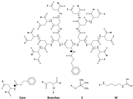 - Friedhofen, J.H.; Vögtle, F. Detailed nomenclature for dendritic molecules. New J. Chem. 2006, 30, 32–43. [Google Scholar] [CrossRef]