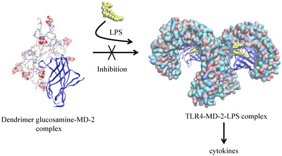 | Glycosylated PAMAM G3.5 + MD-2 protein [52] | XPLOR | Desmond § | OPLS_2005 | Docking and interaction between active and non-active forms |
