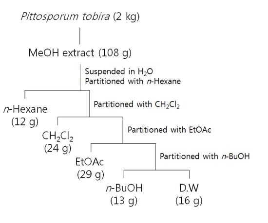 Extraction and solvent partitions from MeOH extract of P. tobira.