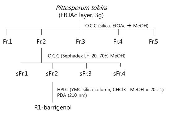 Isolation of R1-barrigenol from EtOAc extract of P. tobira.
