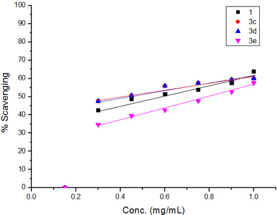 Free radical scavenging activity of compounds 1, 3c–e.