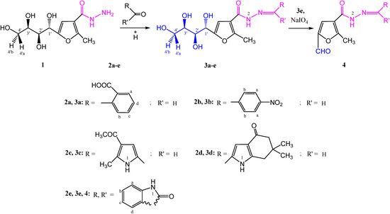 Synthesis of carbohydrazones 3a–e and 4.