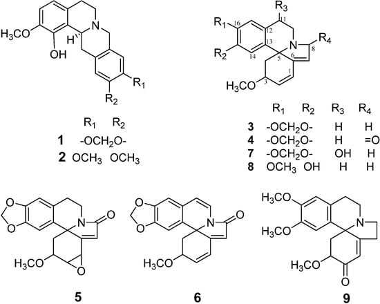 2.1. Isolation and Structural Determination of Alkaloids