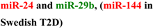 | miR-9, -29a, -30d, -34a, -124a, -146a and -375 | RT-qPCR | Serum | 18 T2D, 19 pre-diabetes (IGT and/or IFG), 19 controls | [108] | ||