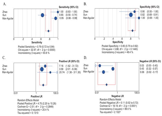 - Zamora, J.; Abraira, V.; Muriel, A.; Khan, K.; Coomarasamy, A. Meta-DiSc: A software for meta-analysis of test accuracy data. BMC Med. Res. Methodol. 2006, 6, 31. [Google Scholar] [CrossRef]