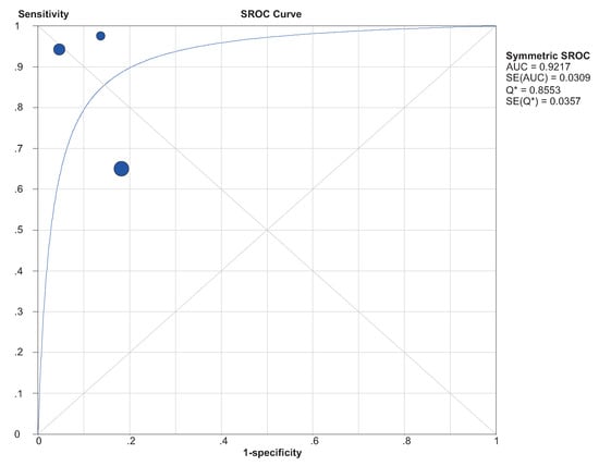 - Walter, S. Properties of the summary receiver operating characteristic (SROC) curve for diagnostic test data. Stat. Med. 2002, 21, 1237–1256. [Google Scholar] [CrossRef]