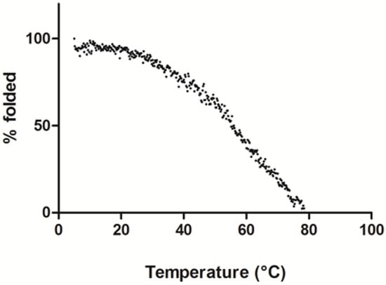 Thermal transition curves for 5FAM6-THP determined by monitoring molar ellipticity (Θ = 225 nm) while the temperature was increased.