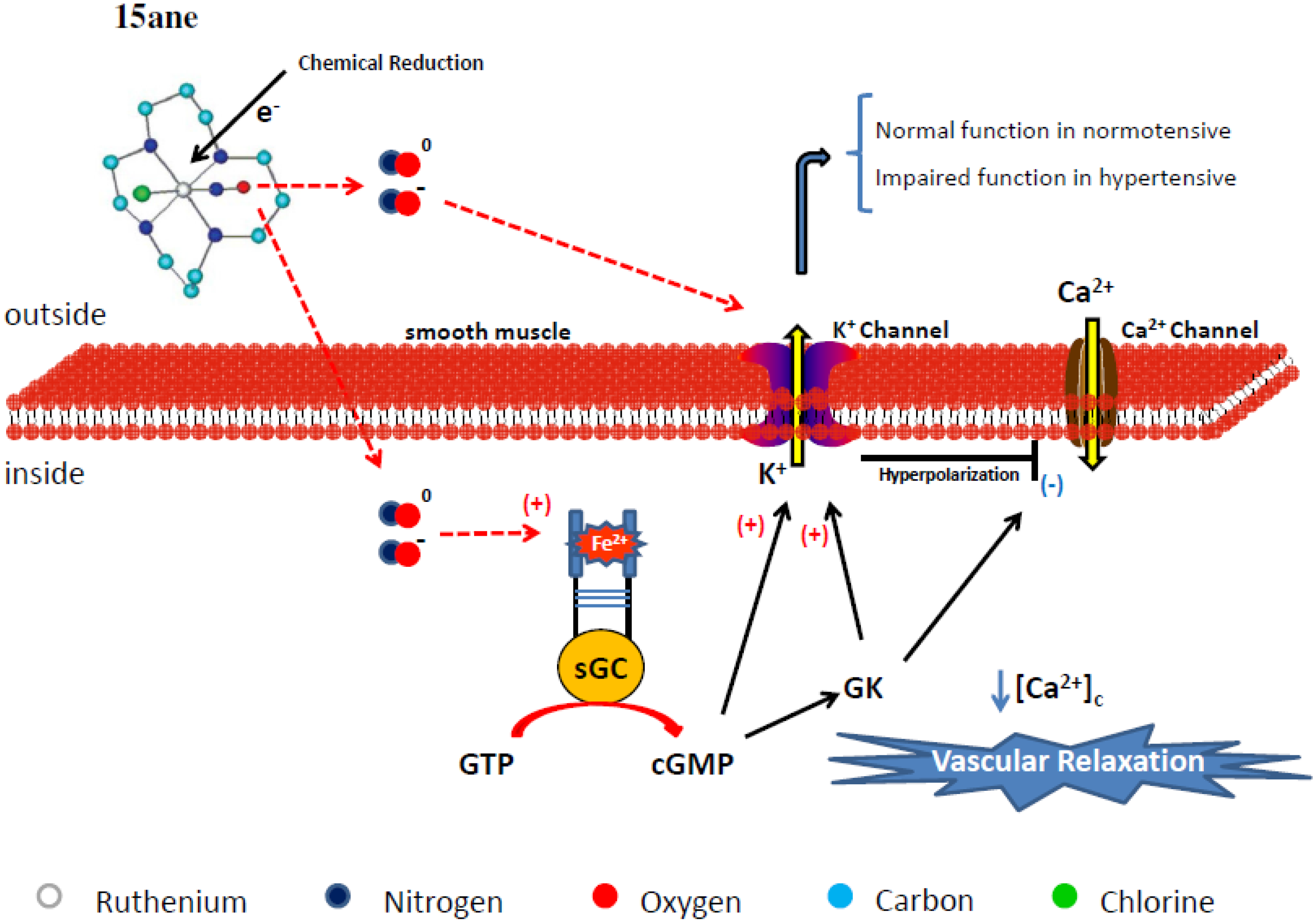 - Lunardi, C.N.; Vercesi, J.A.; da Silva, R.S.; Bendhack, L.M. Vasorelaxation induced by the new nitric oxide donor cis-[Ru(Cl)(bpy)2(NO)](PF6) is due to activation of KCa by a cGMP-dependent pathway. Vasc. Pharmacol. 2007, 47, 139–144. [Google Scholar] [CrossRef]