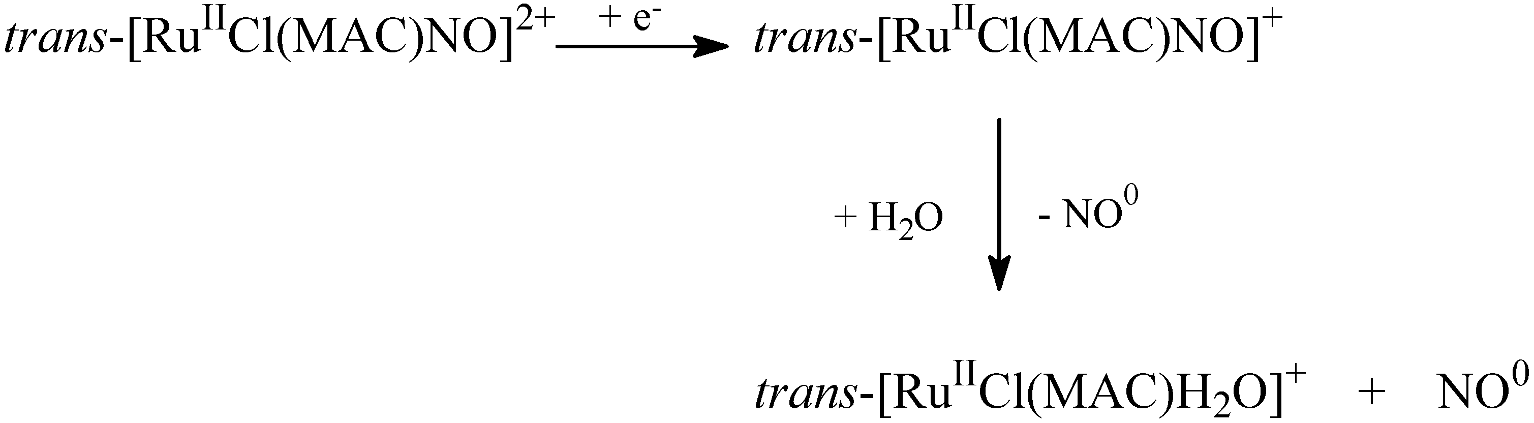 - Marchesi, M.S.P.; Cicillini, S.A.; Prazias, A.C.L.; Bendhack, L.M.; Batista, A.A.; da Silva, R.S. Chemical mechanism of controlled nitric oxide release from trans-[RuCl([15]aneN4)NO](PF6)2 as a vasorelaxant agent. Transit. Metal Chem. 2012, 37, 475–479. [Google Scholar] [CrossRef]