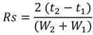 where t = time (min) measured at the peak maximum, and W = width of the peaks measured at the baseline (min).