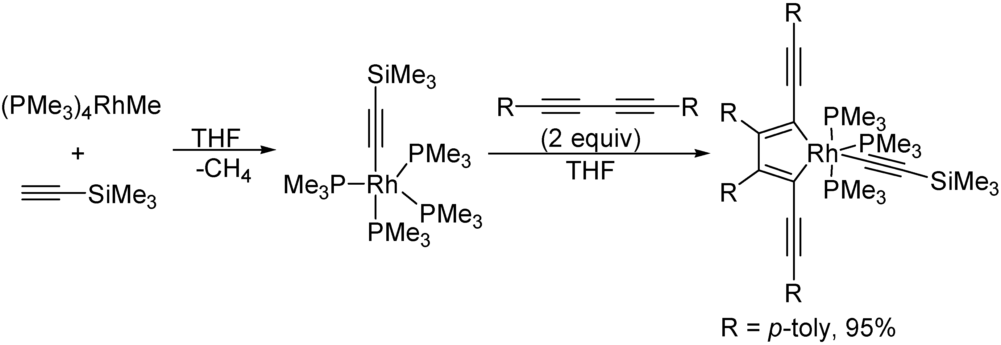 - Rourke, J.P.; Batsanov, A.S.; Howard, J.A.K.; Marder, T.B. Regiospecific high yield reductive coupling of diynes to give a luminescent rhodium complex. Chem. Commun. 2001. [Google Scholar] [CrossRef]
