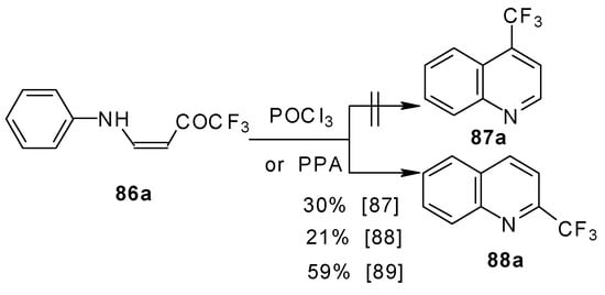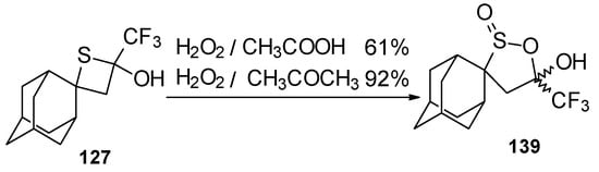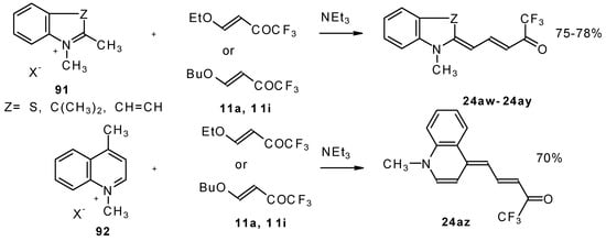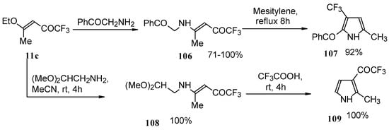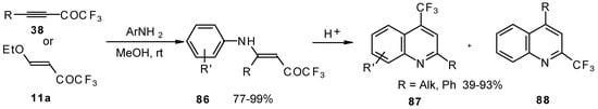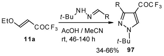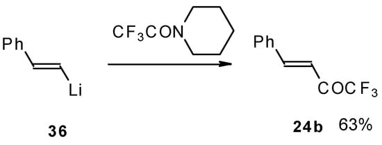 This method enables unsaturated ketones containing perfluoroalkyl groups without β-heteroalkyl substituents to be obtained in moderate yields (Scheme 10) [37,38,39,40,41,42]. Recently it was found that this complex is more appropriate for the trifluoroacylation of various aromatic compounds then other trifluoroacylating reagents [43].
