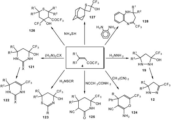One simple and useful approach to the synthesis of trifluoromethyl-containing heterocycles is the synthesis based on the utilization of unsaturated ketones with a trifluoromethyl group (Scheme 1).