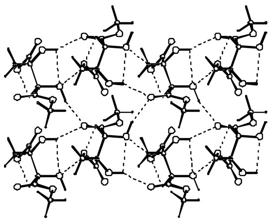 In the crystal, molecules connected by hydrogen bonds, lie roughly in the plane parallel to the (001) lattice plane. Methyl groups are stacked above and below the layer. This is illustrated in Figure 3.