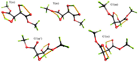 Perspective view of the five lowest energy conformers of (R,R)-tartaric acid dimethyl diester at RHF/6-31G* level.