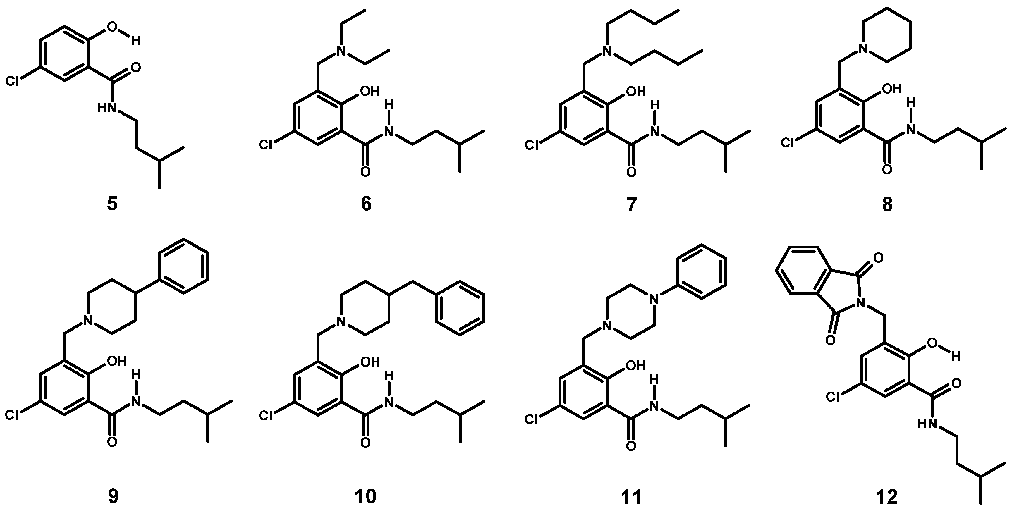 2.1. Hybrids of Salicylalkylamides and Mannich Bases