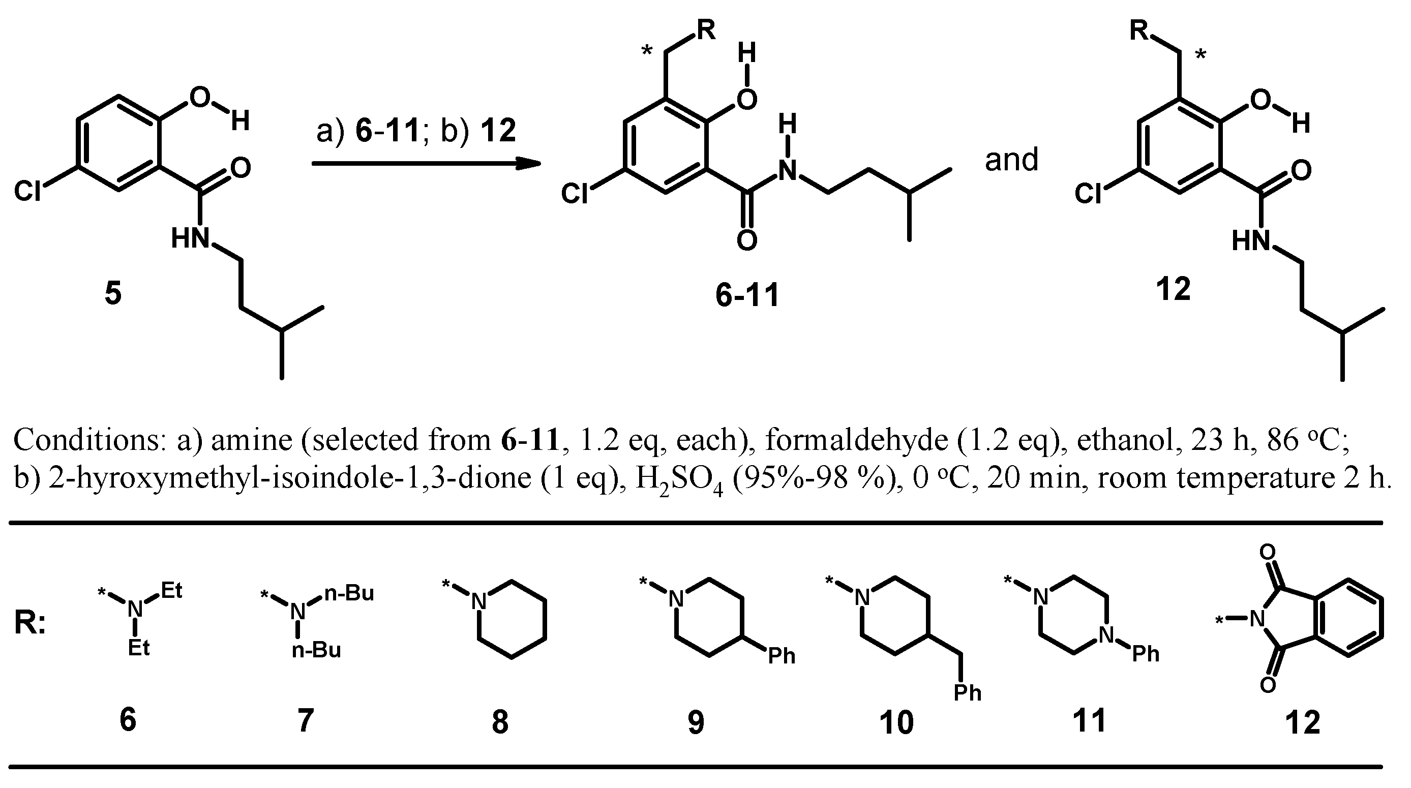 Synthesis of a small library of salicylamide-Mannich base hybrids.